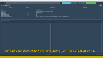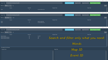 - All-in-One Dashboard: Load your entire game's script into a single, sortable, and filterable table. See the source map/common event, the event ID, the original text, and your new edits side-by-side.